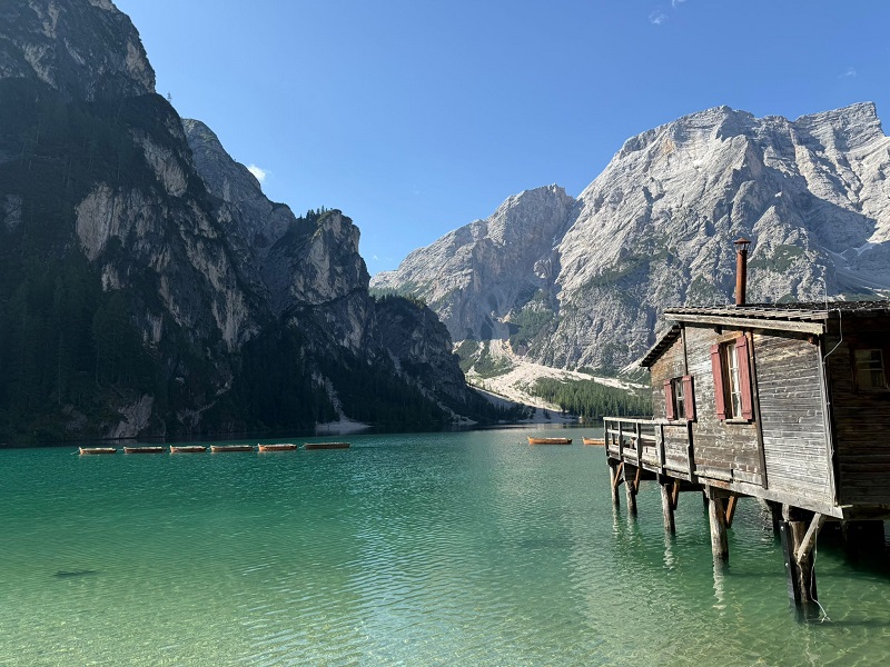 3. Tag: Pragser Wildsee (ca. 31 km, 60 hm Aufstieg) Die heutige Veloroute führt uns vom Pragser Wildsee nach Bruneck. Mit dem Car gelangen wir frühmorgens zum Pragser Wildsee. Beim See angekommen, lohnt sich der Rundwanderweg um den See. Der See gilt als «Perle der Dolomitenseen». Die Runde misst 3.6 km und dauert zirka eine Stunde. Mit dem Velo fahren wir dann vom See zuerst auf der Hauptstrasse bergab bis St. Veit. Dort wechselt der Weg auf einen Forstweg und anschliessend auf den Radweg. Schön gemütlich biegen wir nahe des Pragser Bachs auf den Pustertalradweg, der uns nach Bruneck zurückführt. Unterwegs geniessen wir in Mitterolang ein einfaches Mittagessen.