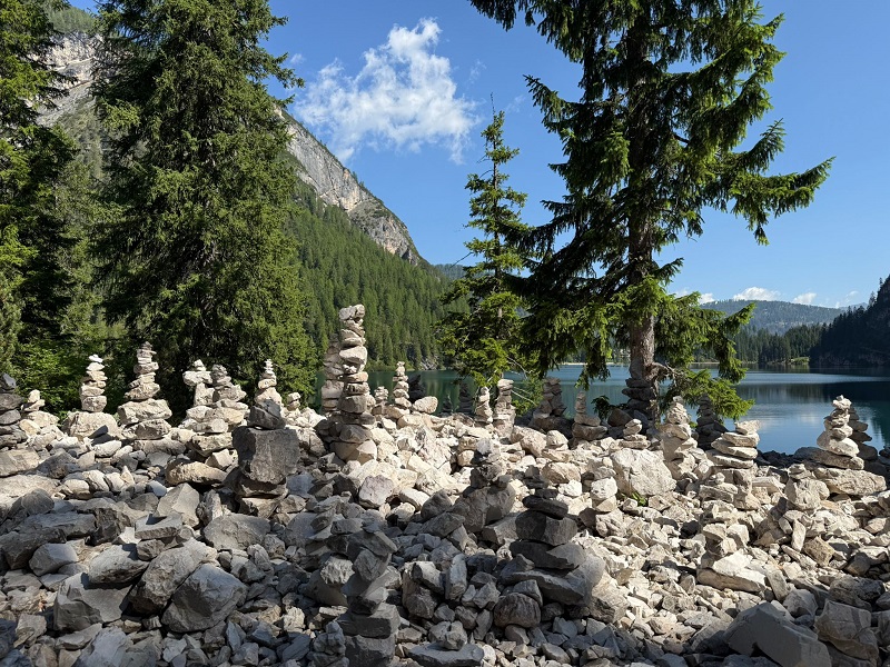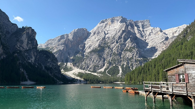 3. Tag: Pragser Wildsee (ca. 31 km, 60 hm Aufstieg) Die heutige Veloroute führt uns vom Pragser Wildsee nach Bruneck. Mit dem Car gelangen wir frühmorgens zum Pragser Wildsee. Beim See angekommen, lohnt sich der Rundwanderweg um den See. Der See gilt als «Perle der Dolomitenseen». Die Runde misst 3.6 km und dauert zirka eine Stunde. Mit dem Velo fahren wir dann vom See zuerst auf der Hauptstrasse bergab bis St. Veit. Dort wechselt der Weg auf einen Forstweg und anschliessend auf den Radweg. Schön gemütlich biegen wir nahe des Pragser Bachs auf den Pustertalradweg, der uns nach Bruneck zurückführt. Unterwegs geniessen wir in Mitterolang ein einfaches Mittagessen.