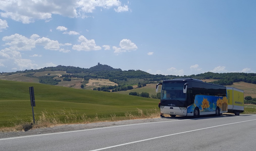 | 1. Tag: Schweiz - Toskana nach San Donato Anreise mit dem Car in die Toskana. Die Toskana zählt mit ihren unvergleichlichen Orten, Kunstschätzen und der einmaligen Landschaft zweifelsohne zu einer der sehenswertesten Regionen der Welt. Am späteren Nachmittag erreichen wir unsere Unterkunft, die sich mitten in der toskanischen Landschaft befindet und einen ruhigen, angenehmen Aufenthalt verspricht. 2. Tag: San Miniato - Besuch Daccordi Rahmenhersteller (ca. 48 km, 750 hm, 25% Gravel) Heute fahren wir auf der Via Francigena in Richtung Norden. Das Ziel liegt in San Miniato, wo wir das Thema Fahrräder aus einer anderen Perspektive kennenlernen. Nach einer kurzen Mittagspause besuchen wir am Nachmittag das familiengeführte Unternehmen Daccordi. Eine Fahrradrahmenfabrik, in der Sena und Stefano eine Tradition des Rahmenbaus fortsetzen die von Luigi Daccordi begonnen wurde. Der Firmengründer Luigi ist auch heute im Alter von 8o Jahren immer noch auf der Suche nach seinem perfekten Rahmen. Die Rückfahrt zum Hotel erfolgt mit dem Bus. 3. Tag: Castellina in Chianti (ca. 73 km, 1600 hm, 50% Gravel) Heute starten wir gemeinsam mit der anderen Gruppe und lassen uns vom Bus bis nach San Casciano chauffieren. Dort startet unsere Tour ins Chiantigebiet. Wir erreichen Castellina in Chianti. Von dort folgen wir der Strecke der Eroica (ein historischer Event, an dem nur teilgenommen werden darf, wenn das Velo noch eine Schaltung am Rahmen und Körblipedalen hat). Diese Tour ist lang, es ist darum empfohlen ein Range Extender mitzunehmen. 4. Tag: Prato d'Era (ca. 60 km, 1000 hm, 60% Gravel) Diese Route führt uns entlang der alten Strasse, die einst Volterra mit San Gimignano, Certaldo und Florenz verband. Wie alle alten Strassen ist auch diese von Zypressen gesäumt. Die alten Kirchen, Villen und Burgen sind heute zu Resorts geworden und somit vielerorts für die Öffentlichkeit zugänglich. Die Atmosphäre vergangener Zeiten ist in den alten Gebäuden, die mit dem nötigen Komfort modernisiert wurden, noch immer zu spüren. Diese Tour kann nur bei optimalen Wetterbedingungen in ihrer Gesamtheit zurückgelegt werden, andernfalls wird ein Teil der Strecke auf Asphalt gefahren. 5. Tag: Monteriggioni (ca. 63 km, 1300 hm, 50-70% Gravel) Diese Strecke beginnt (wetterabhängig) nach wenigen Kilometern mit Schotter. Wir erreichen Monteriggioni, indem wir die Hügel kreuz und quer durchqueren, wobei es auch steile Anstiege und einige Passagen zum Schieben geben wird. Die von weit sichtbare Festung ist das Wahrzeichen der Region und war auch schon Drehort für zahlreiche Filme. Wir werden es uns nicht entgehen lassen, die Festung selbst zu stürmen und danach eine wohlverdiente Mittagspause einzulegen. Gestärkt treten wir den Heimweg an und nehmen den Anstieg zum Hotel in Angriff. 6. Tag: Certaldo (ca. 53 km, 1100 hm, 30% Gravel) Am letzten Tag rollen wir durch die Hügellandschaft rund um San Gimignano. Olivenhaine und Rebberge säumen den Weg und immer wieder tauchen die Türme von San Gimignano auf. Unser Ziel ist Certaldo, wo wir im alten Stadtteil ein kleines Mittagessen geniessen. Die Rückkehr nach San Gimignano erfolgt auf asphaltierten, jedoch steilen Nebenstrassen. 7. Tag: Toskana - Schweiz Nach intensiven Tagen treten wir am Morgen nach dem Frühstück die Heimreise an. Auf dem Weg zurück in die Schweiz haben wir Zeit, die unzähligen Eindrücke, welche wir auf den fünf Touren durch die Toskana gewonnen haben, Revue passieren zu lassen. Wichtige Infos für die Gravel Gruppe Anforderung an das Fahrrad: · Gravel Bike (mind 1 Untersetzung) · E-Gravel Bike, MTB oder E-MTB · Reparaturmaterial: Pumpe, 2 Ersatzschläuche, Schaltauge, Bremsbeläge, Kettenschloss für die eigene Kette Konditionelle und technische Anforderungen Obschon die Kilometerzahl nicht immer deutlich mehr ist als bei anderen Touren, sind es doch anspruchsvollere Kilometer. Denn auf unbefestigtem Untergrund wie Schotter, ist das Fahren bedeutend anstrengender. Martina Ventrice hat versucht, möglichst alle stark befahrenen Strassen und Asphaltwege zu vermeiden und wenn immer machbar auf Gravelstrecken zu fahren. Die geplanten Touren können aber nur bei trockenen Wetterverhältnissen gefahren werden. Bei Regen wird auf weniger anspruchsvolle Routen ausgewichen. Das MTB ist dem Gravelbike vorzuziehen, es sei denn, man verfügt über eine gute Beherrschung des Fahrrads auf Schotterstrassen in unregelmässigem Gelände. Eine gute Kondition ist zu dem erforderlich, falls kein E-Bike benutzt wird. Durchführung mit Reise Ferienidylle Toskana Die Gravel-Woche wird zeitgleich mit der Velowoche «Ferienidylle in der Toskana» angeboten. Wir reisen als grosse Gruppe zusammen in die Toskana, werden vor Ort aber unterschiedliche Programme haben. Am Abend treffen wir uns jeweils wieder im Hotel und können uns über das Erlebte austauschen. |